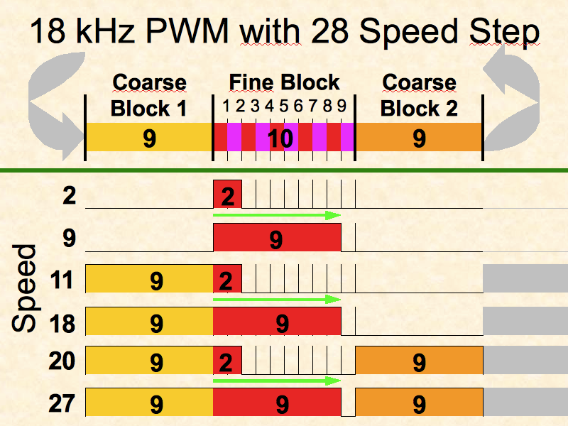 With the calibration method it is also possible to calibrate to 28µs time loop and I write a program for can motors with 18kHz PWM.